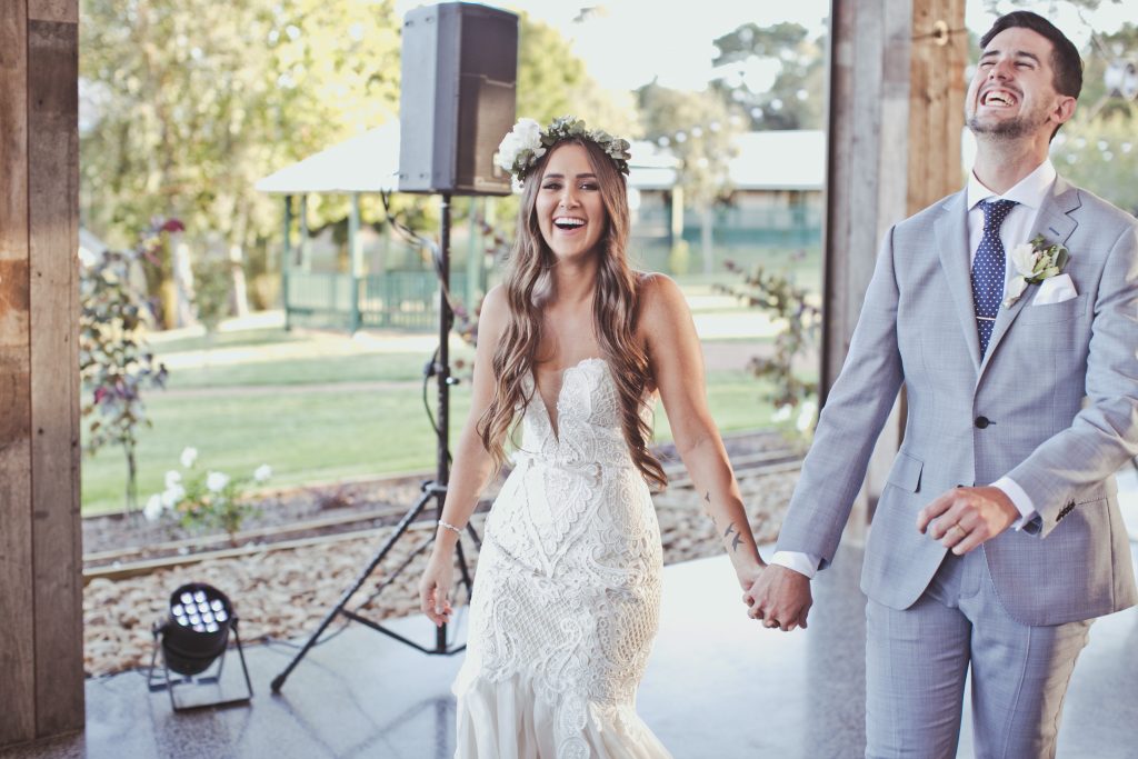 Just think, having your wedding out in the countryside, far away from the hustle and bustle of the city. What a venue it was at Flowerdale Estate to host Jaclyn and Lachlan’s special day. The colours from the trees, greenery of the grass in the farms and hills running across the horizon illuminated our photographers take the perfect shots from the day. With extra little furry friends, and the gushing sound of the river at the farm made the moment that much more special. Although there were some nerves and worries for bride to be, this was soon forgotten as she had the support of her friends and family. The bride and bridesmaids created a special moment by having custom robes for one another. The speech provided by the groom was one to remember and everything pieced together for a memorable and delightful moment for all who attended.